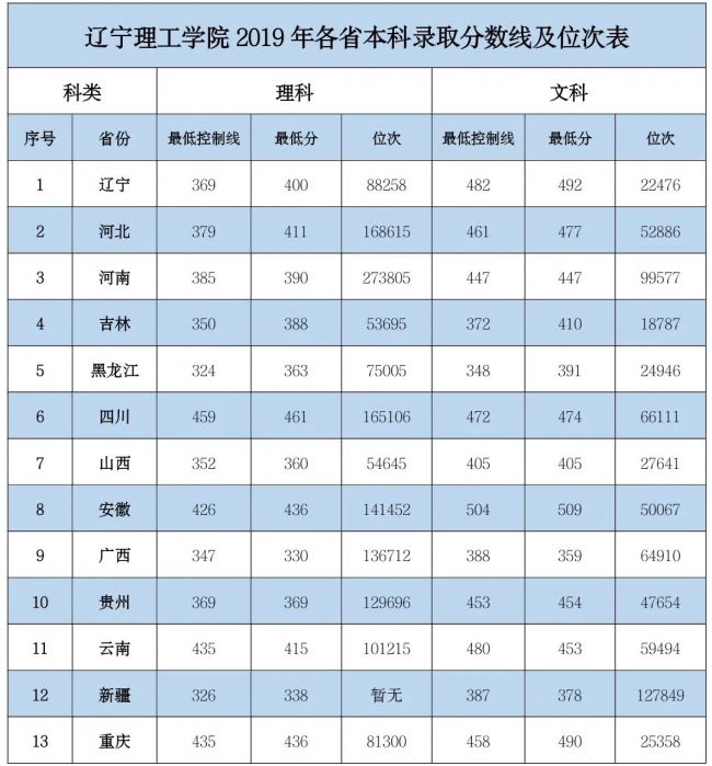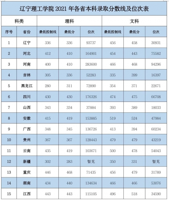 原标题:2019-2021年辽宁理工学院各省份本科录取分数线及位次表
