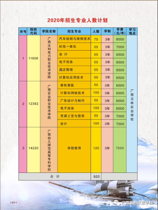 广西玉林农业学校2020年高职招生简章