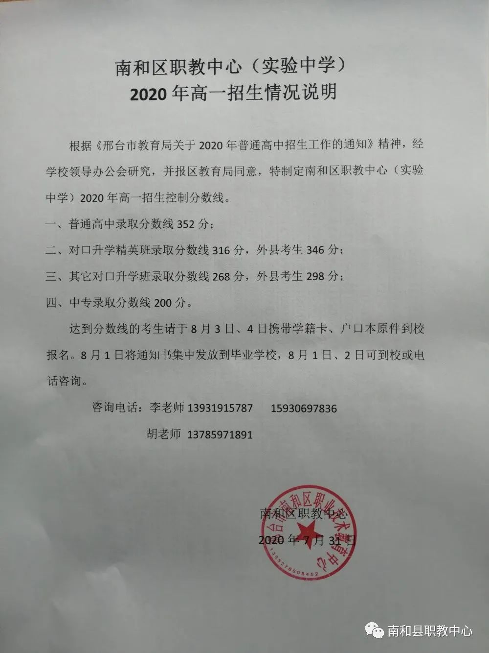 原标题:2020年南和区职教中心(实验中学)高一招生情况说明