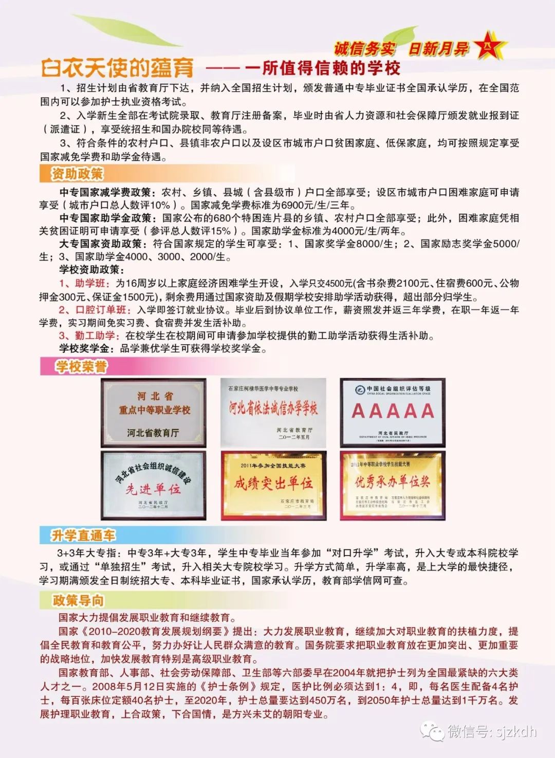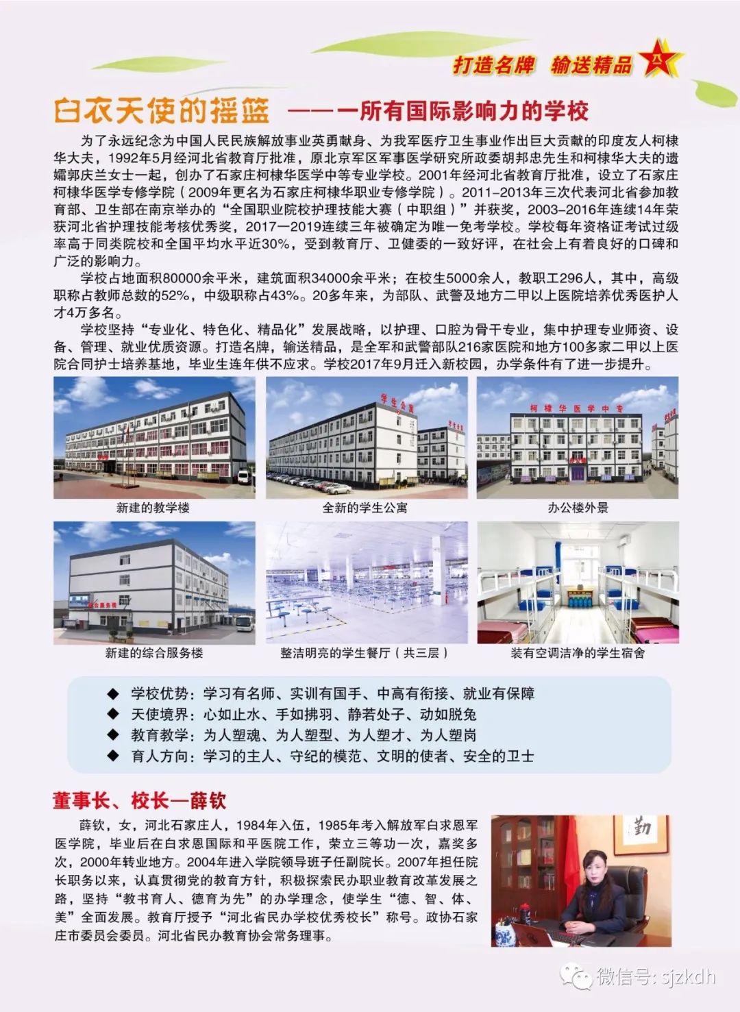 2019年石家庄柯棣华医学中等专业学校秋季招生简章(图)