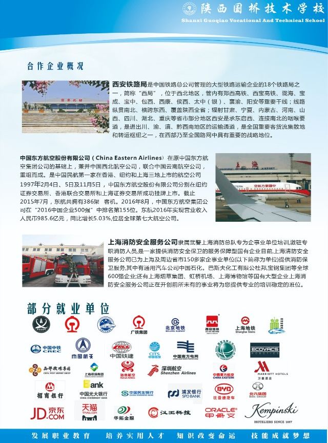 陕西国桥技术学校是经陕西省政府部门批准成立的一所综合性全日制技术学校。学校位于西安市鄠邑区,与西安石油大学、西安建筑科技大学等高等学校相毗邻。 学校拥有专、兼职教师近200人,其中一线工程师、教授占40%。学校下设有互联网工程系、轨道交通工程系、智能技术系、商学系、教育管理系等多个院系,近20个多个特色专业。全国实训基地100余家,并与国内外多家企业合作,立足西安面向全国,以确保我校学生安置就业。学校本着"知识丰富人生,技能成就梦想"的办学理念,坚持以服务为宗旨,以就业为导向的执教方针,旨在培养高素质、实用型专业技能人才,倾力打造全国最具特色的一流技能型人才教育与培养基地。