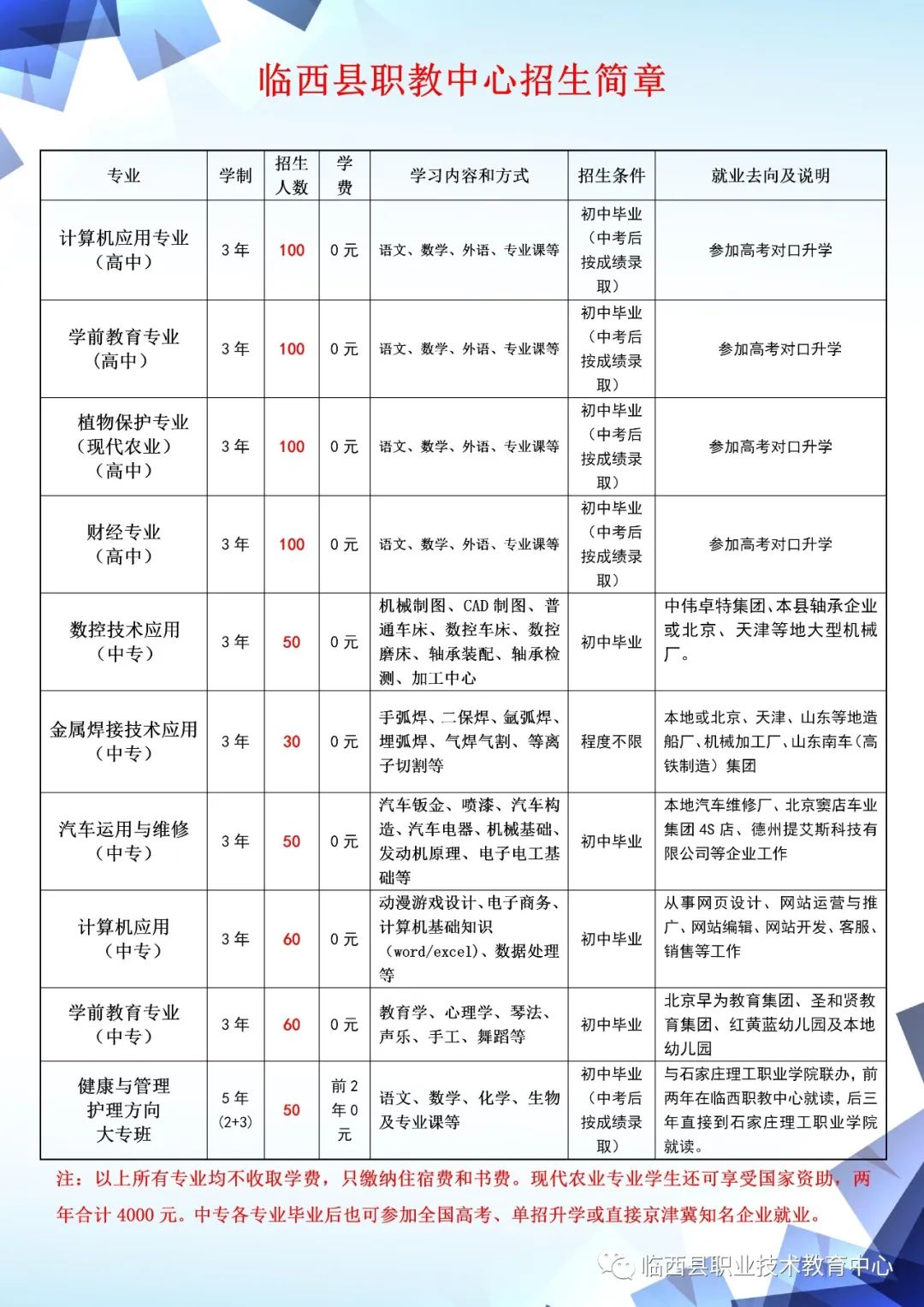 原标题:2020年邢台临西县职业技术教育中心招生简章(图)
