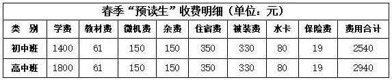 应广大学生及家长的强烈要求,经学校研究决定:开设春季“预读生”班,设工程测量、材料试验、电工三个专业。报名学生本人及时与招生办联系进行面试,面试时间和形式由招生办确定,入学后由教学管理科组织进行文化课考试,考试内容为同等学历语文、数学。综合面试和笔试成绩后,报分管领导审批,确定预读生资格。学校暂缓办理“预读生”学籍手续,只进行个人信息登记,待秋季新生入学后,编入新生班,随新生进行正常学制学习,享受国家免学费政策和助学金政策。