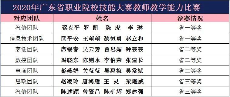 (3)2020年广东省职业院校技能大赛教学能力比赛获奖情况。