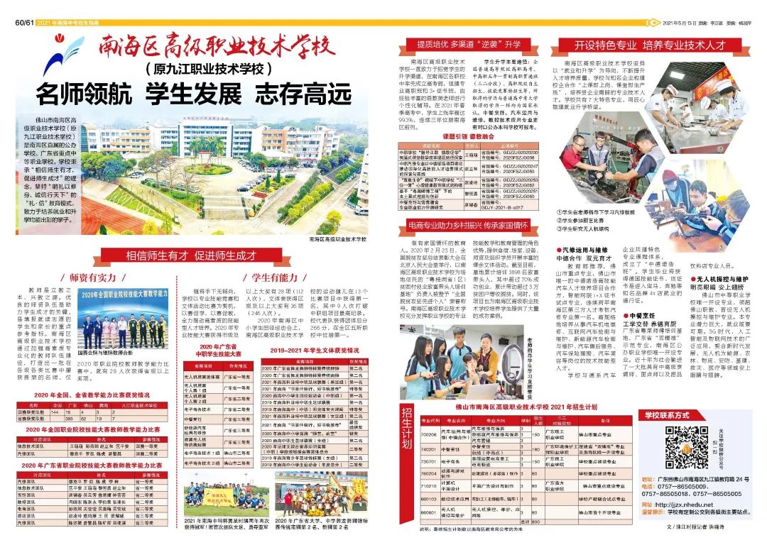 原标题:2021年佛山市南海区高级职业技术学校招生简章