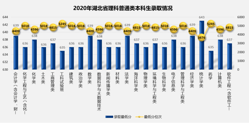 1. 2020年湖北省普通批次分专业录取最低分及最低分对应位次情况