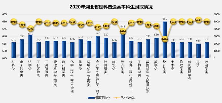 2.2020年湖北省普通批次分专业录取平均分及平均分对应位次情况: