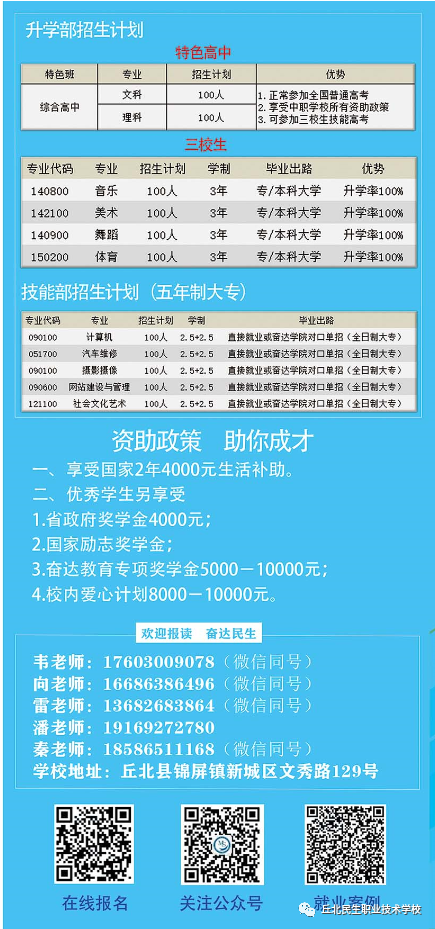 原标题:2021年深圳奋达教育集团丘北民生分校招生简章(图)