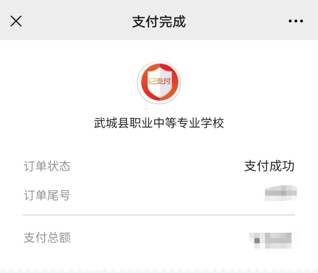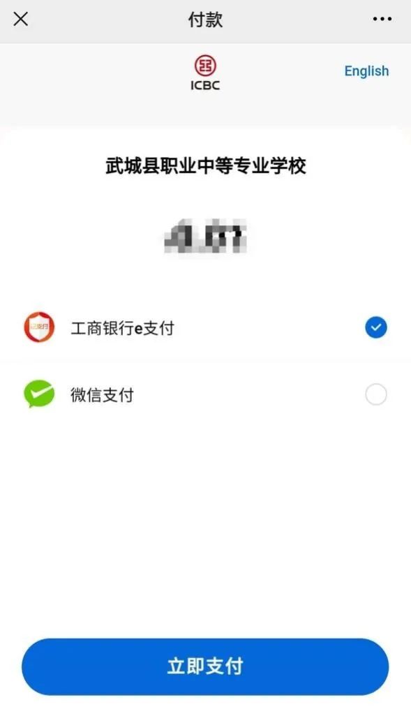 5.选择微信支付或工行e支付,交费成功后提示支付成功,如下图所示。