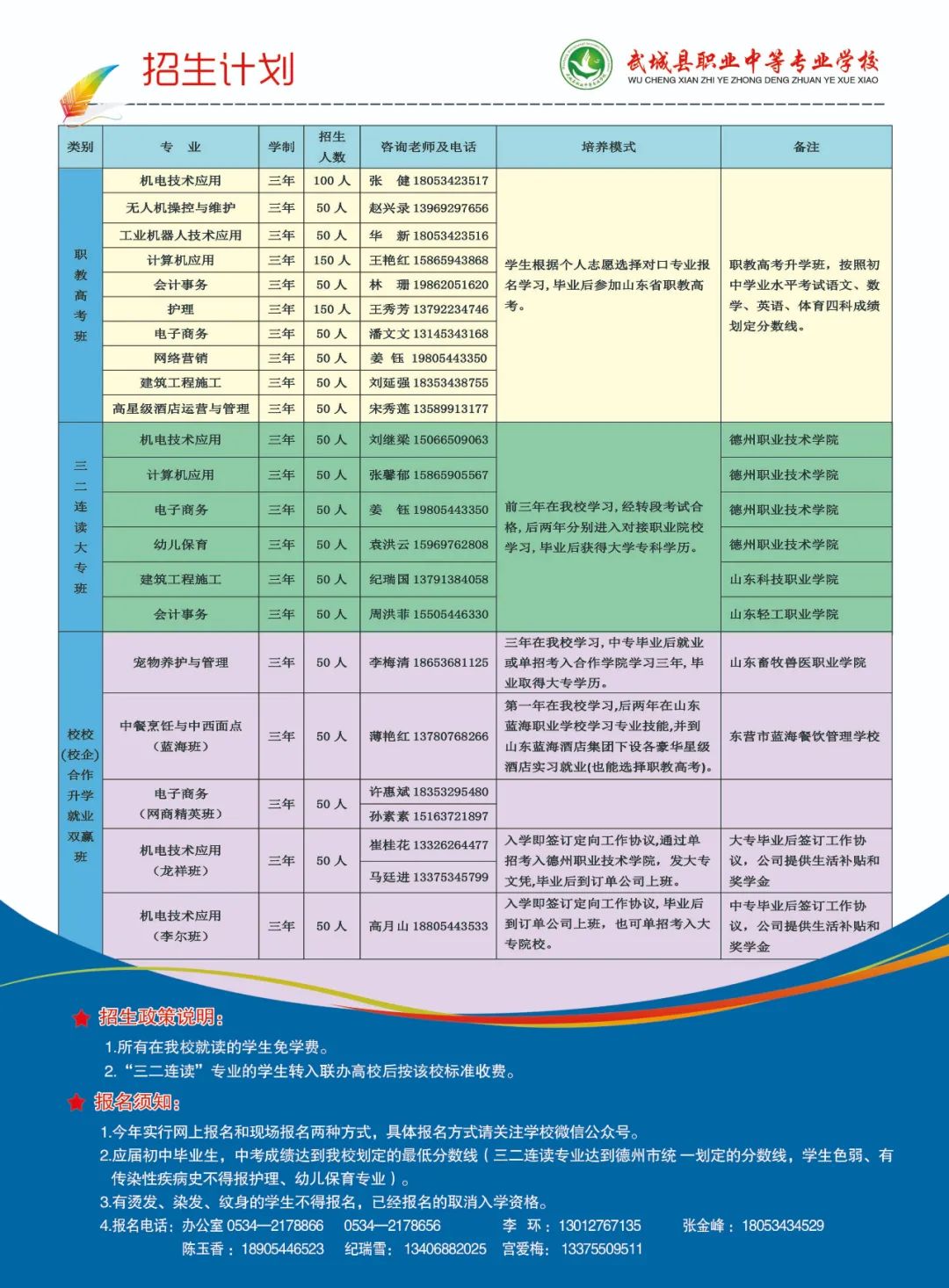 2021年武城县职业中等专业学校招生方案