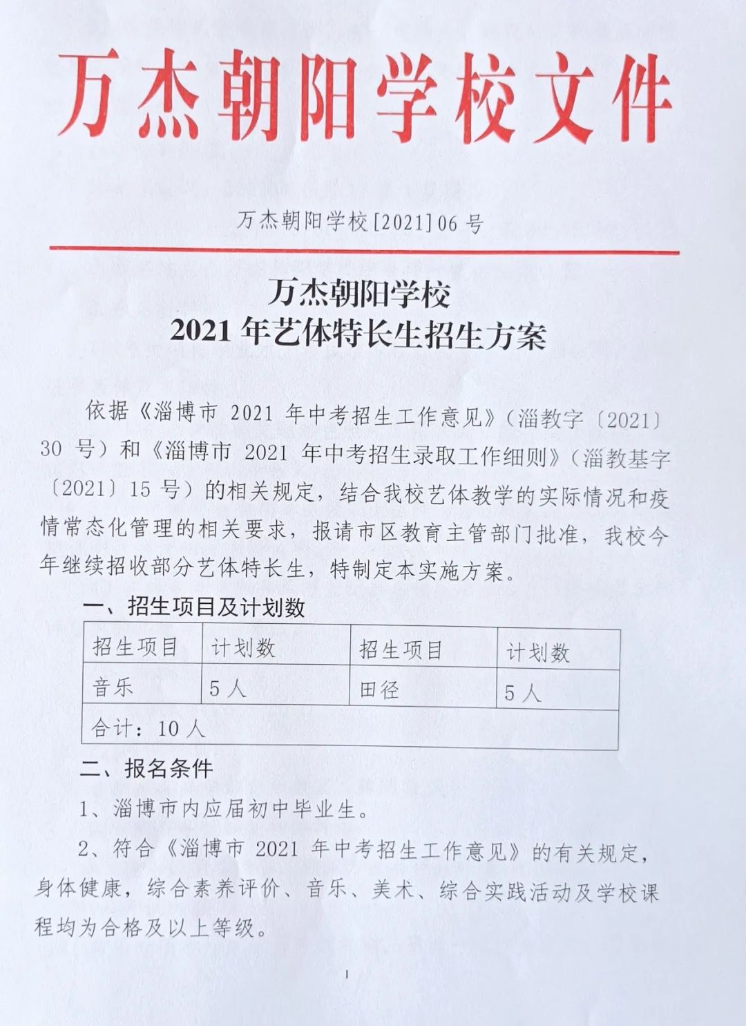 原标题:2021年万杰朝阳学校艺体特长生招生方案(图)