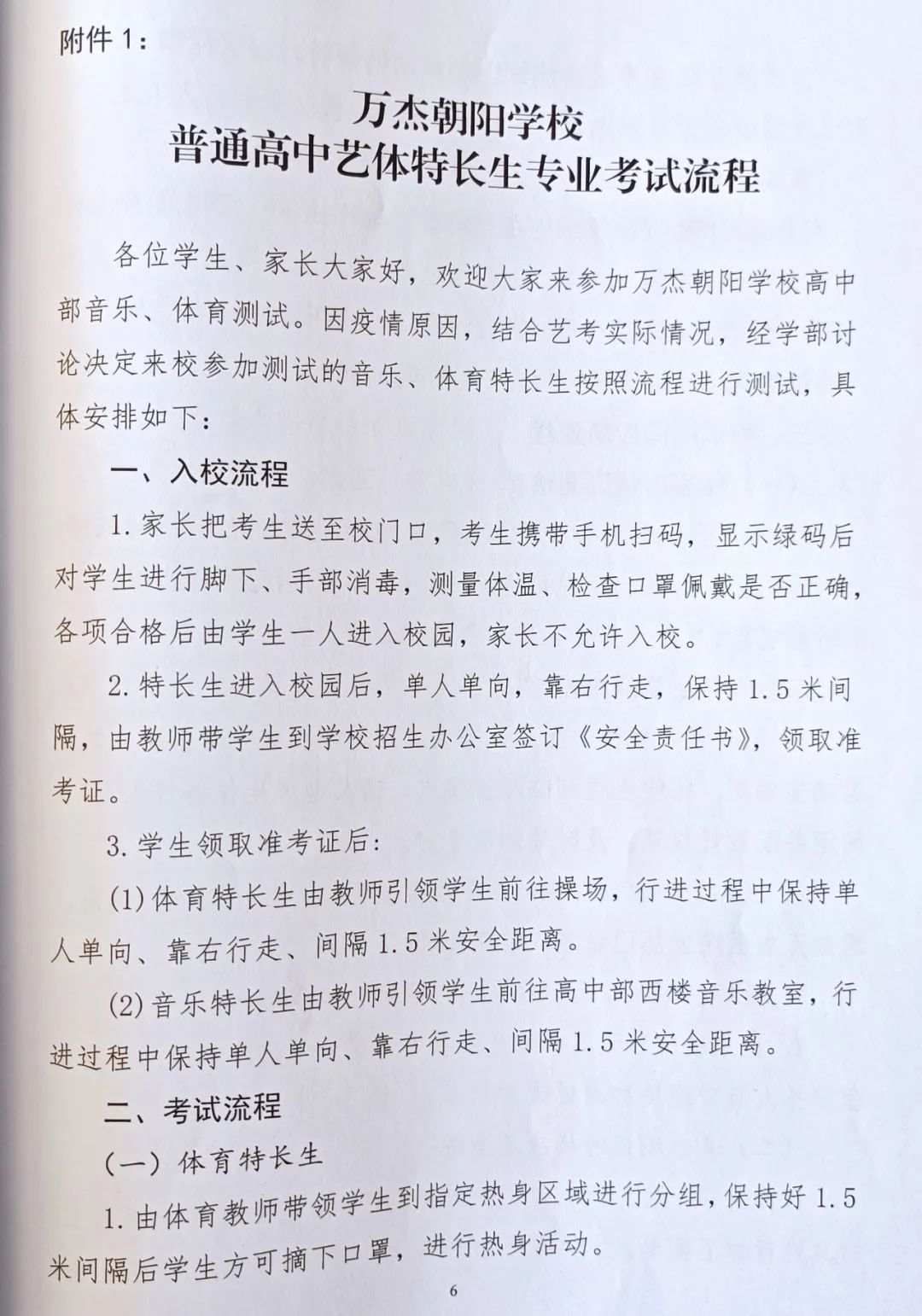 2021年万杰朝阳学校艺术体育部招生专业测试方案