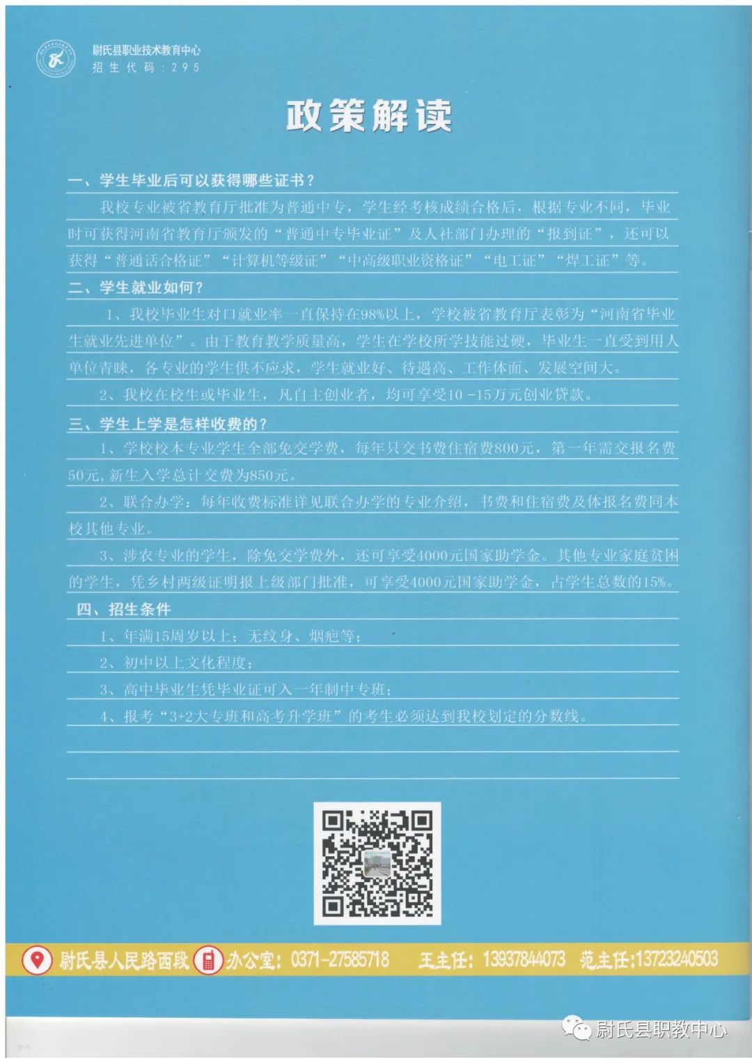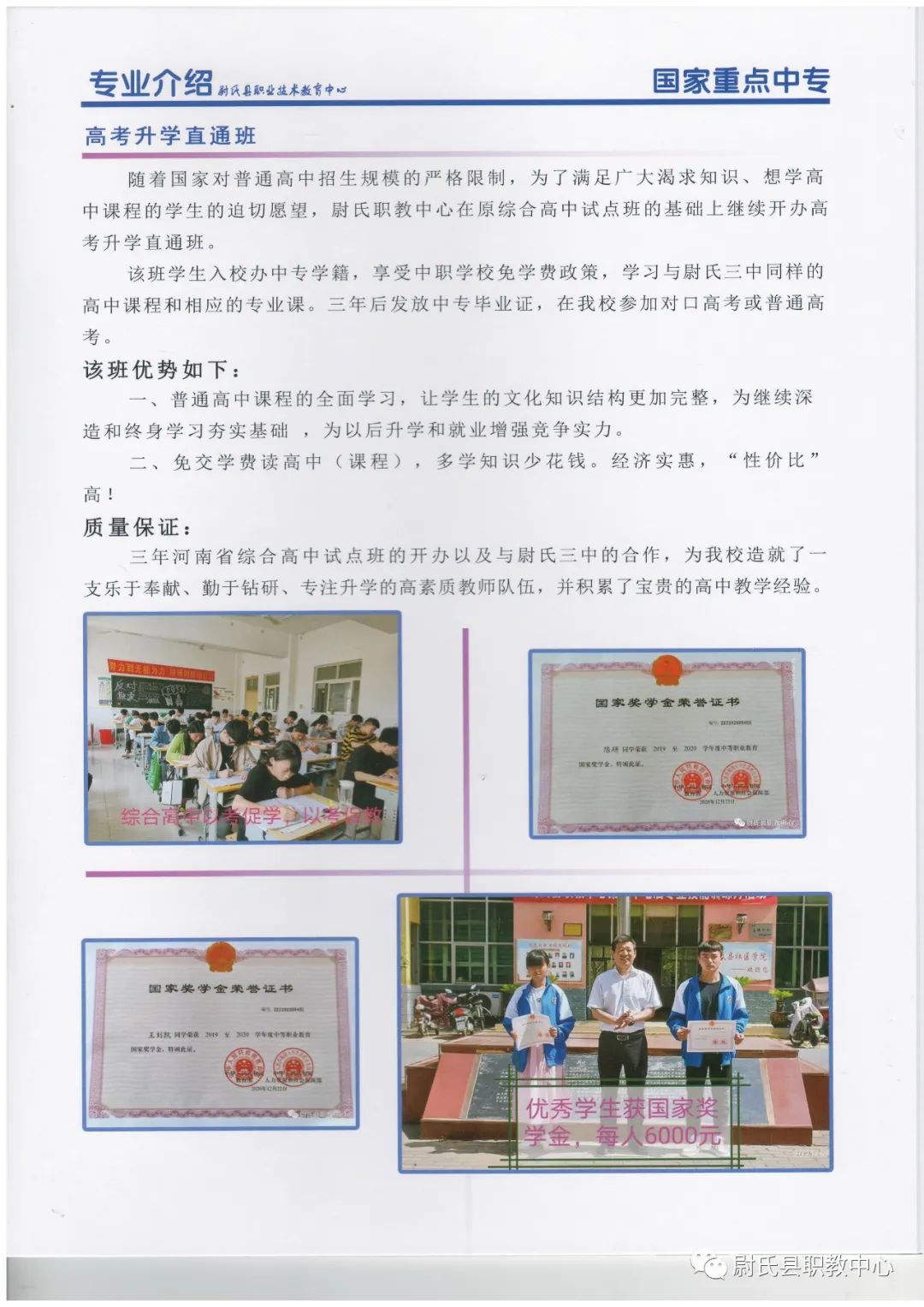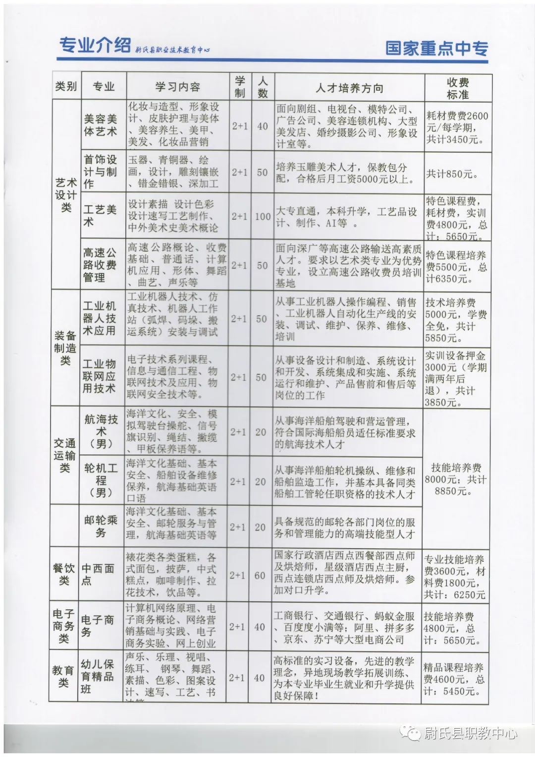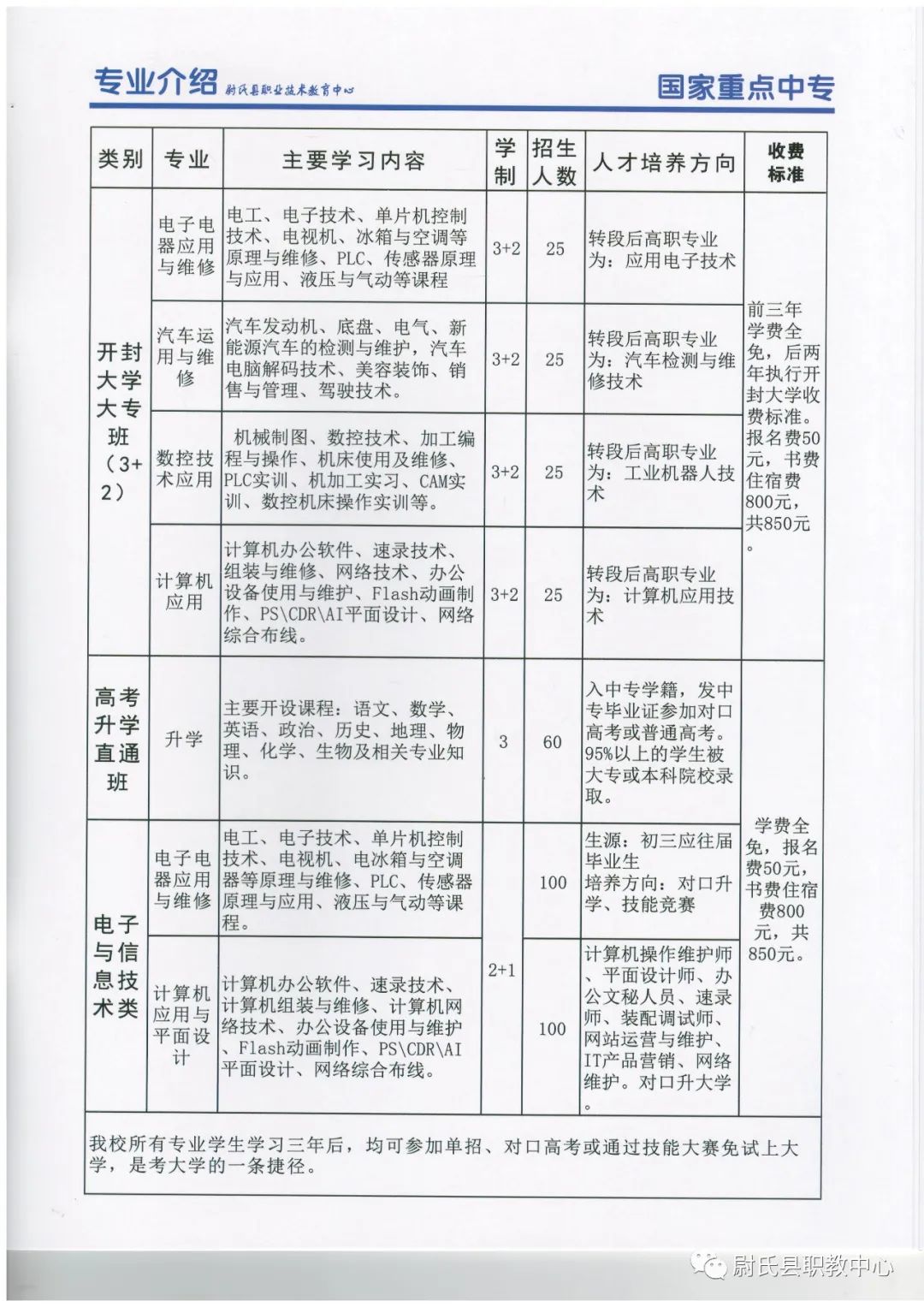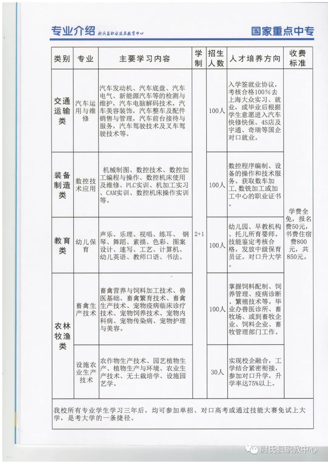 尉氏县职业技术教育中心2021年秋季招生简章: