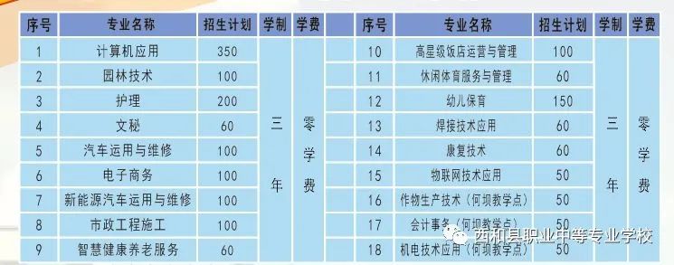 | 1 | 计算机应用 | 350 | 三年 | 零 学 费 |