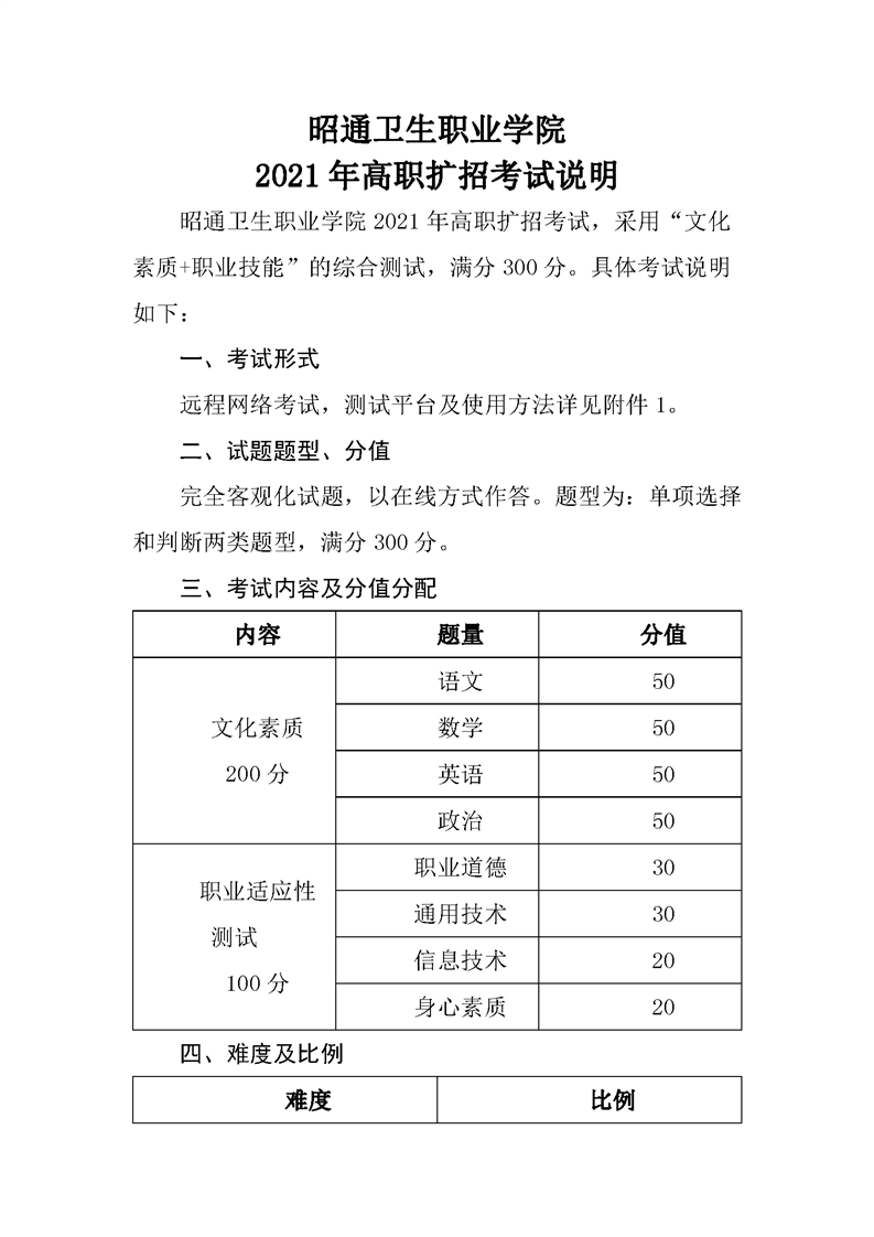 2021年昭通卫生职业学院高职扩招考试说明(图)(4)