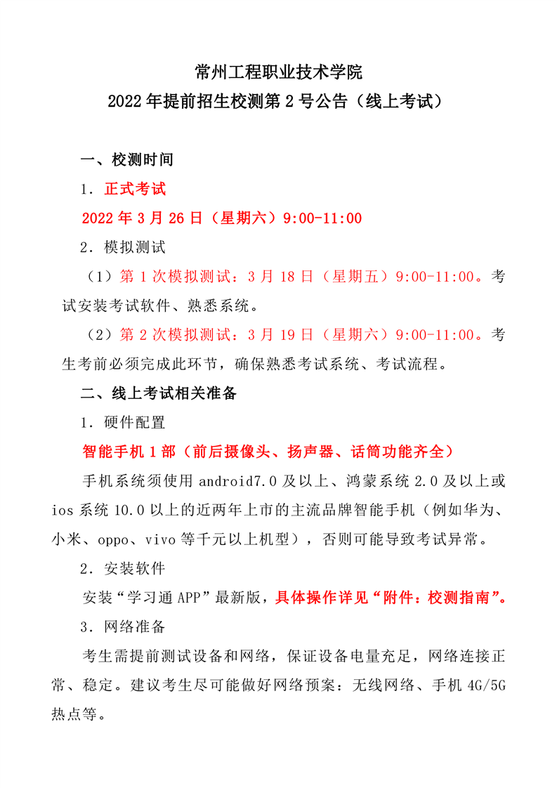 原标题:2022年常州工程职业技术学院提前招生校测第二号公告(线上考试)