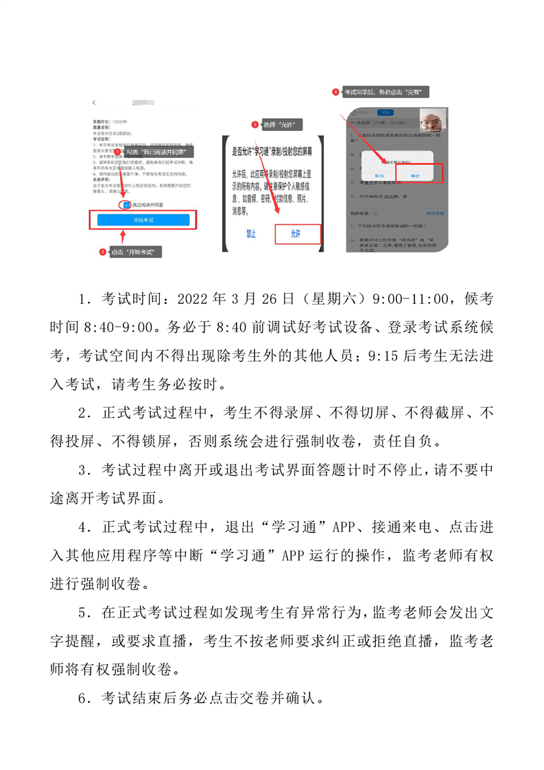 2.考生务必认真做好各项考试准备,若由于考生的原因出现了考试设备故障、系统操作失误、考试结果未提交等情况,责任由考生自行承担。