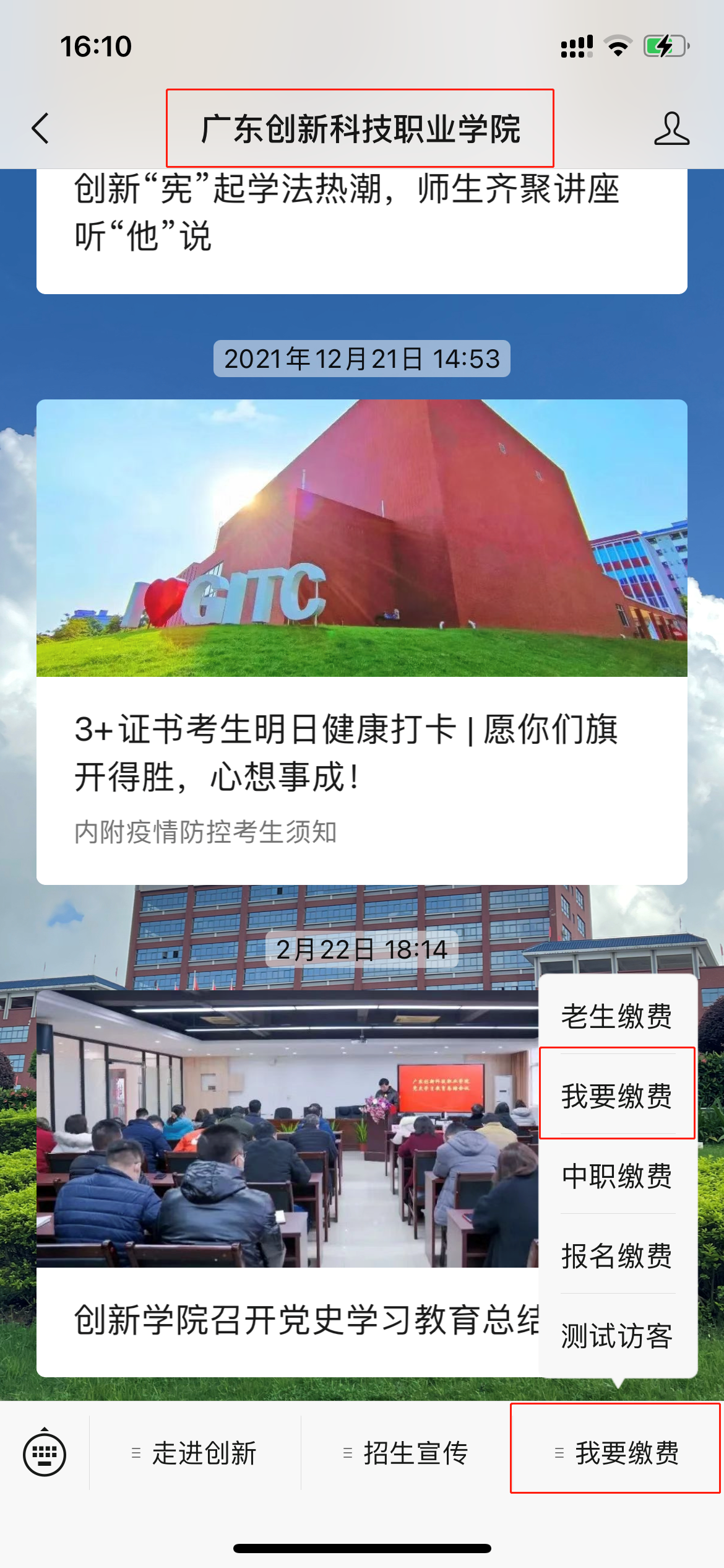广东创新科技职业学院2022年五年一贯制单独招生考试缴费指南