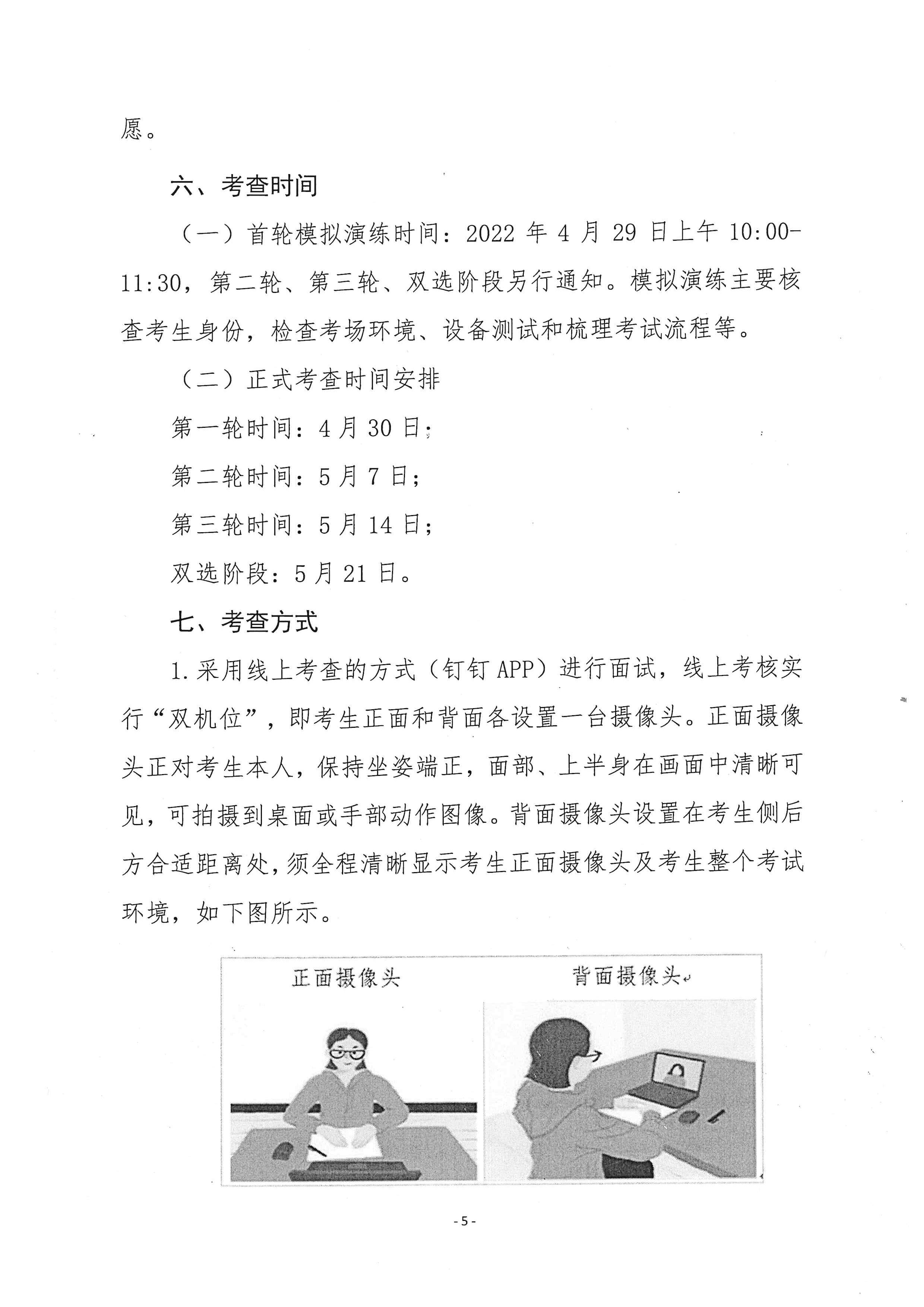 (一)首轮模拟演练时间: 2022年4月29日上午10:00-11:30,第二轮、第三轮、双选阶段另行通知。模拟演练主要核查考生身份,检查考场环境、设备测试和梳理考试流程等。
